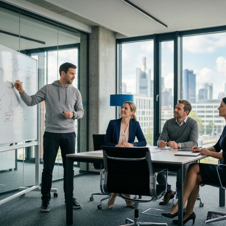 Ein Mitarbeiter aus Ihrem Unternehmen lernt Schritt für Schritt, wie moderne Mitarbeitersuche funktioniert. Sie erhalten klare Abläufe, Interviewleitfäden und Vorlagen für die Mitarbeitersuche.